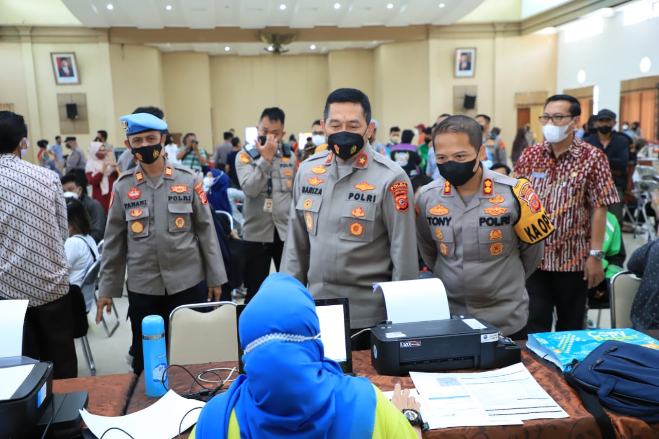 Gerai vaksinasi ini ditinjau secara langsung oleh Wakapolda Jabar Brigjen Pol. Bariza Sulfi dan didampingi oleh Kapolres Ciamis AKBP Tony Prasetyo Yudhangkoro, SH., S.I.K., M.T., Dandim 0613/Ciamis Letkol Inf Wahyu Alfiyan Arisandi, S.I.P., M.I.Pol., dan Sekretaris Daerah Kabupaten Ciamis H. Tatang.