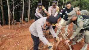 Fakta reformasi,- Kapolres Sukabumi Polda Jabar Maruly Pardede pimpin langsung bersama Tim Gabungan lakukan penutupan ratusan galian lubang penambangan emas tanpa izin di area Perhutani Blok Cibuluh, Desa Ciemas Kecamatan Ciemas, Kabupaten Sukabumi Jawa barat, pada Kamis (8/6/2023).