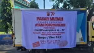 Dalam rangka memperingati Hari Bhayangkara ke-77, Polres Sukabumi Polda Jabar menggelar pasar murah yang menawarkan 2 ton ayam beku dengan harga terjangkau. Kapolres Sukabumi Polda Jabar, AKBP Maruly Pardede, mengumumkan bahwa acara ini akan berlangsung di alun-alun Palabuhanratu, Kabupaten Sukabumi. Rabu, (28/06/2023).