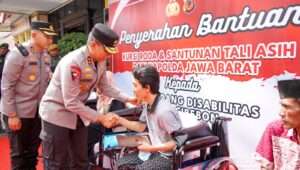 Kapolda Jabar Irjen Pol Dr. Akhmad Wiyagus S.Ik.,M.SI.,M.M menyampaikan pemberian kursi roda dan tali asih yang di berikan kepada penyandang Disabilitas sebagai wujud kepedulian terhadap sesama.