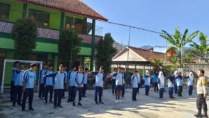 Sumedang – BRIPKA DIKDIK ILHAM, Bhabinkamtibmas Desa Baginda, melaksanakan kegiatan binluh (Bimbingan Pembinaan dan Penyuluhan) dengan memberikan materi tentang pencegahan kenakalan remaja dan bahaya narkoba, serta mengenalkan dasar baris berbaris (PBB) kepada siswa-siswi MA PLUS ALMUNIR. Kegiatan ini berlangsung di Dusun Dangdeur, Desa Baginda, Kecamatan Sumedang Selatan, Kabupaten Sumedang. Kamis (20/7/2023)