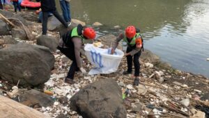 Melihat hal tersebut personel Sat Brimob Polda Jabar bersama TNI dan masyarakat melaksanakan kerja bakti membersihkan sampah-sampah plastik yang akan menyumbat aliran sungai ketika volume air meningkat.