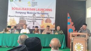 Sumedang – Kapolsek Sumedang Utara Polres Sumedang, Kompol Awam Muhammad Rizal, S.A.B., menghadiri acara Sosialisasi dan Launching Kampung Moderasi Beragama yang digelar di Graha Muhammadiyah, Jalan Dano, Kelurahan Kotakaler, Kecamatan Sumedang Utara, Kabupaten Sumedang. Acara tersebut dihadiri oleh berbagai tokoh agama, perwakilan pemerintah, serta undangan lainnya.
