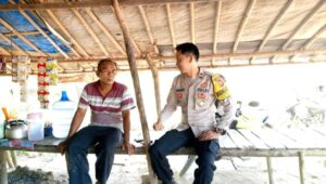 Bhabinkamtibmas Polsek Ciampel Polres Karawang Polda Jabar Aipda Januar Fajar sosialisasi terkait pencegahan Tindak Pidana Perdagangan Orang (TPPO) di desa binaan.