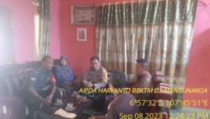 Cimanggung_Sumedang. Sinergitas TNI-POLRI dalam pelayanan Kepada Masyarakat, Bhabinkamtibmas Desa Magunarga Polsek Cimanggung Polres Sumedang Polda Jabar Aipda Haryanto bersama Babinsa Sertu Maaman Rosadi dan Ketua rw 04 melaksanakan kegiatan Jumat Curhat di rumah Bp Oyo Ds Mangunarga Kec Cimanggung Kab. Sumedang. Jum’at (08/09/2023).