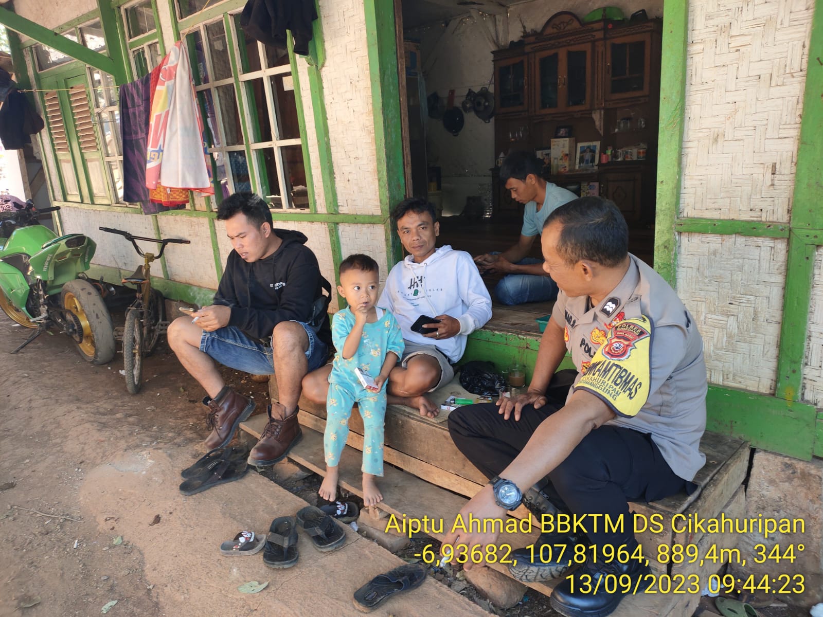 Cimanggung-Sumedang. Bhabinkamtibmas Desa Cikahuripan Polsek Cimanggung Polres Sumedang Polda Jabar AIPTU AHMAD SUBEKTI laksanakan sambangi warga kp Cikadaton guna monitoring keamanan dan ketertiban masyarakat (kamtibmas). Rabu (13/09/2023).