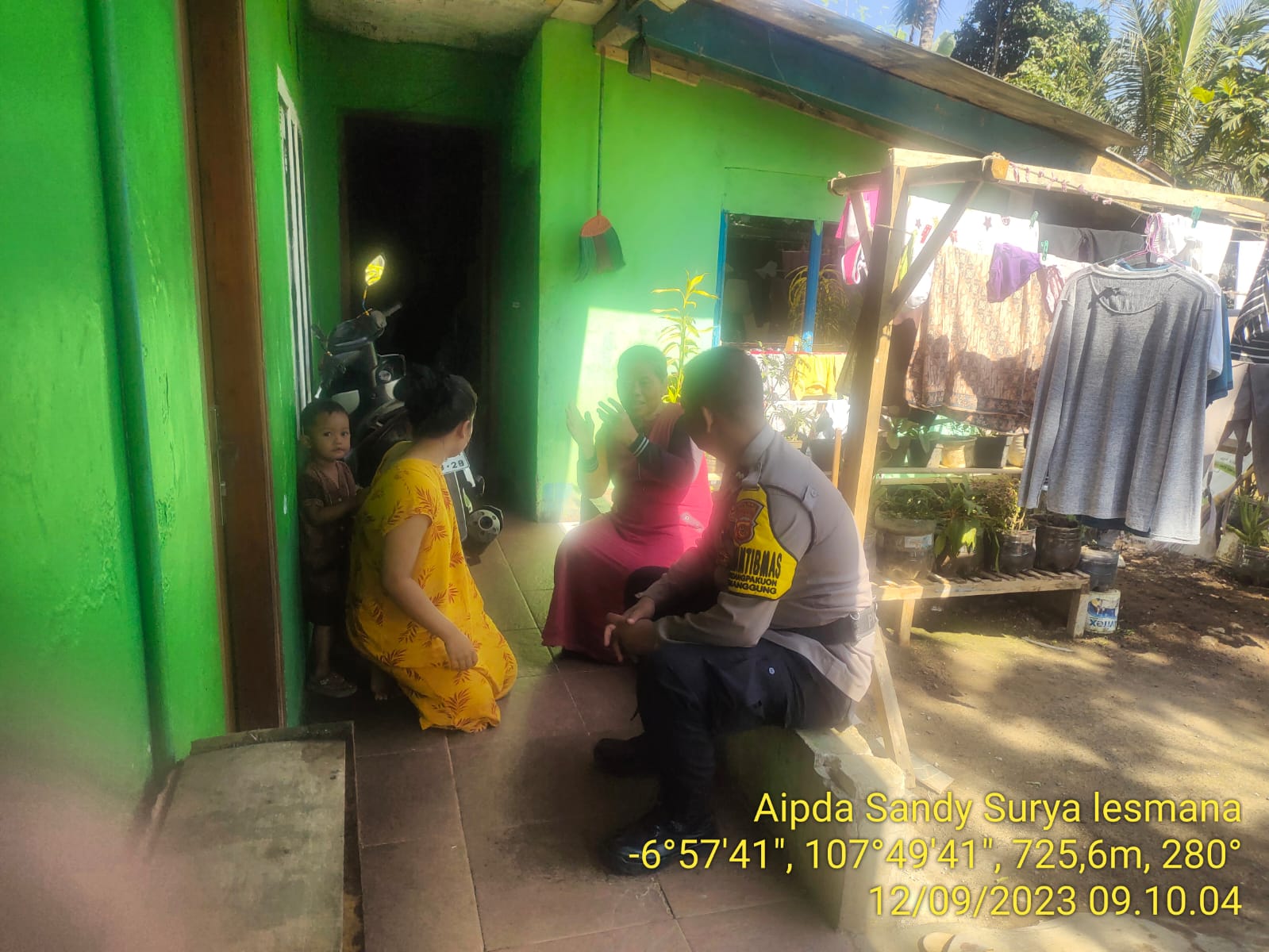 Cimanggung-Sumedang. Bhabinkamtibmas Desa Sindangpakuon Polsek Cimanggung Polres Sumedang Polda Jabar AIPDA SANDY SURYA laksanakan sambangi warga dusun manabaya guna monitoring keamanan dan ketertiban masyarakat (kamtibmas). Selasa (12/09/2023).