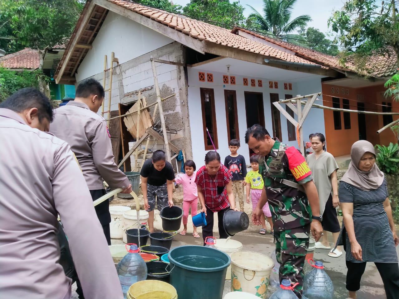 Sinergitas TNI-POLRI Polsek Kawalu Dan Koramil 1203/Kwl melaksanakan giat Bakti Sosial pembagian air bersih kepada warga yang terdampak kekeringan.