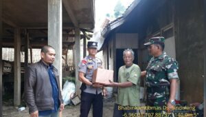 Cimanggung_Sumedang. Bhabinkamtibmas Desa Sindulang Polsek Cimanggung Polres Sumedang Polda Jabar Bripka Ekih Mintara, Babinsa Pelda Mampan Manalu dan kadus 1 Ds. Sindulang, telah melaksanakan kegiatan silaturahmi kamtibmas dan memberikan sarana kontak berupa bantuan sembako kepada seorang warga yang bernama Bpk Memed, 73 Tahun, Buruh Harian Lepas, Dsn. Sindulang RT 03 RW 02, Ds. Sindulang Kec. Cimanggung Kab. Sumedang. Jum’at (15/09/2023).