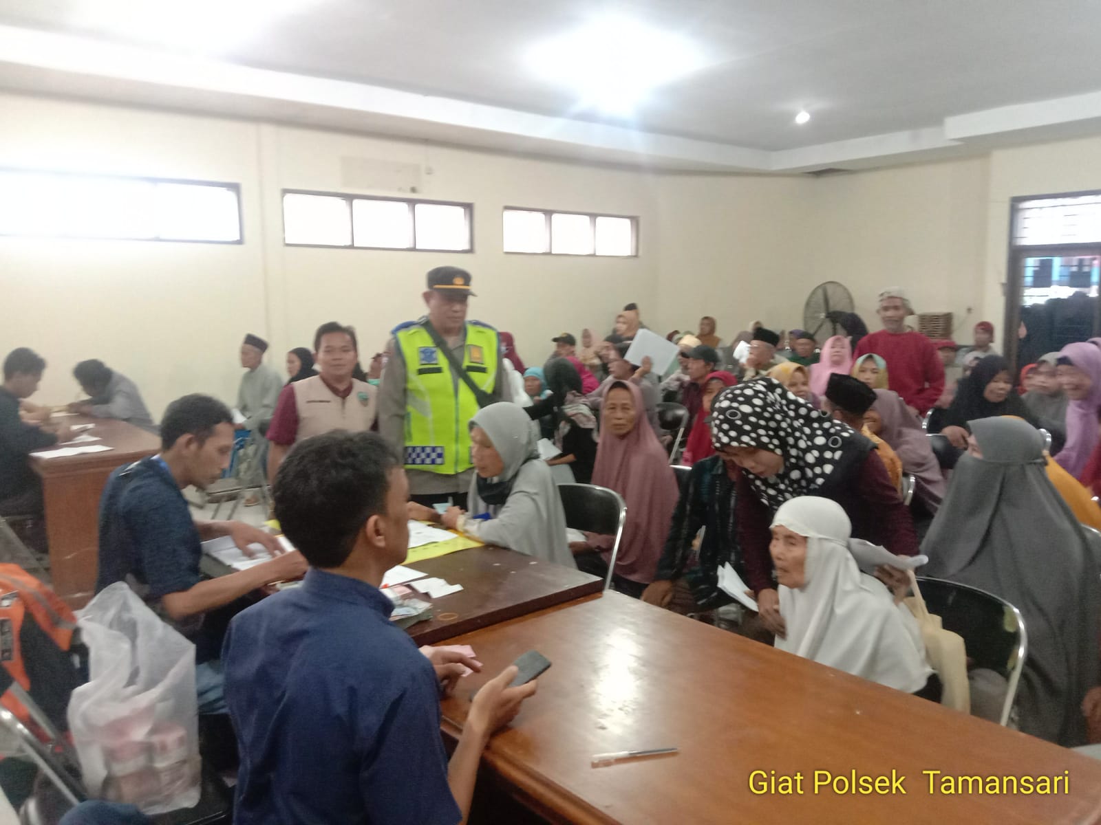 Ipda Asep Farid (Kanit Binmas Polsek Tamansari) Monitoring Giat Pembagian/, Penyaluran Bansos Program PKH Kemensos untuk Keluarga Penerima Manfaat (KPM) se Kec.Tamansari.