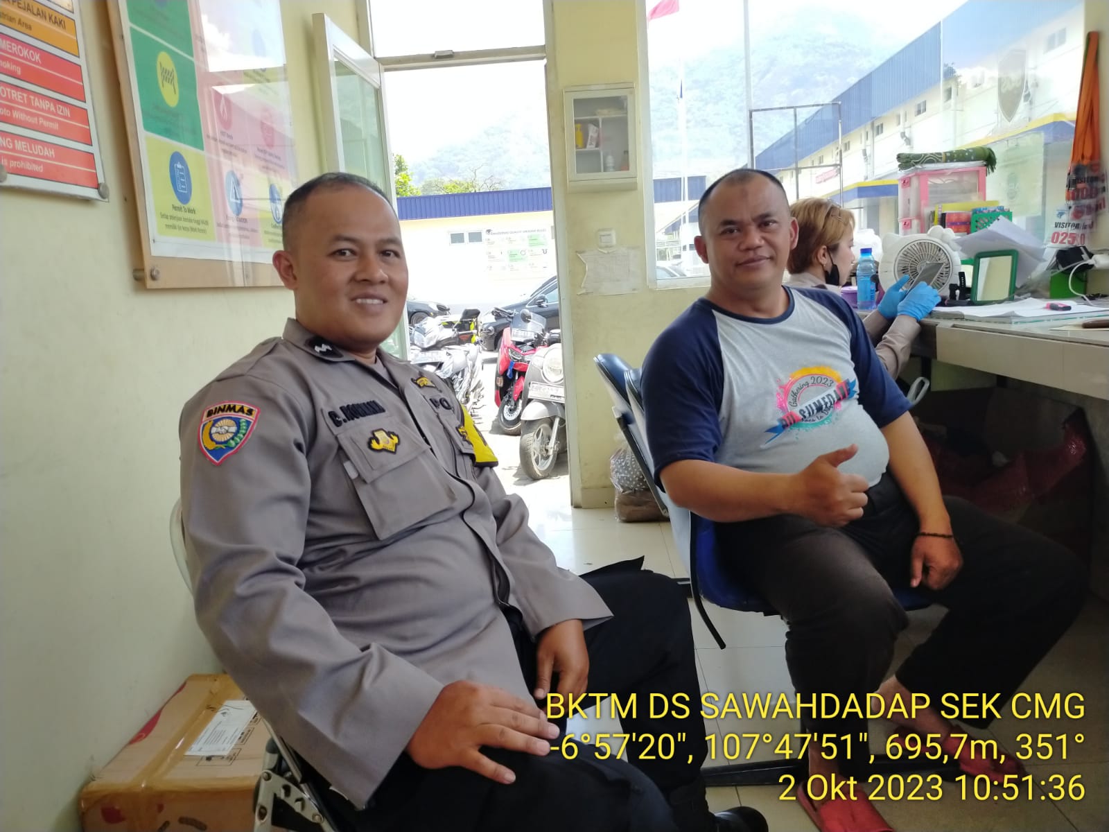 Cimanggung_Sumedang. Bhabinkamtibmas Desa Sawahdadap Polsek Cimanggung Polres Sumedang Polda Jabar Aipda Deni Rohmana telah melaksanakan kegiatan silaturahmi kamtibmas di Pos Secuity PT.Garuda Good Kawasan Dwipapuri Kec. Cimanggung Kab. Sumedang. Senin (02/10/2023).