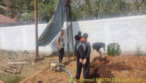 Cimanggung_Sumedang. Aiptu Ahmad Subekti Bhabinkamtibmas Polsek Cimanggung Polres Sumedang Polda Jabar melaksanakan giat silaturahmi kamtibmas kontrol pembangunan sumur bor yng sedang di kerjakan di masjid Jami Al Isra dsn cikadaton RT 01 rw06 desa Cikahuripan kecamatan cimanggung kab Sumedang. Selasa (03/10/2023).