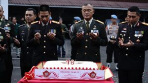 “Hari ini kami datang dengan maksud untuk memberikan kejutan kepada anggota TNI yang sedang memperingati hari jadinya. Tentunya di hari yang penting ini kami segenap keluarga besar Polda Jabar ikut bergembira dan turut serta merayakan HUT TNI ke 78.” ucap Kapolda Jabar.