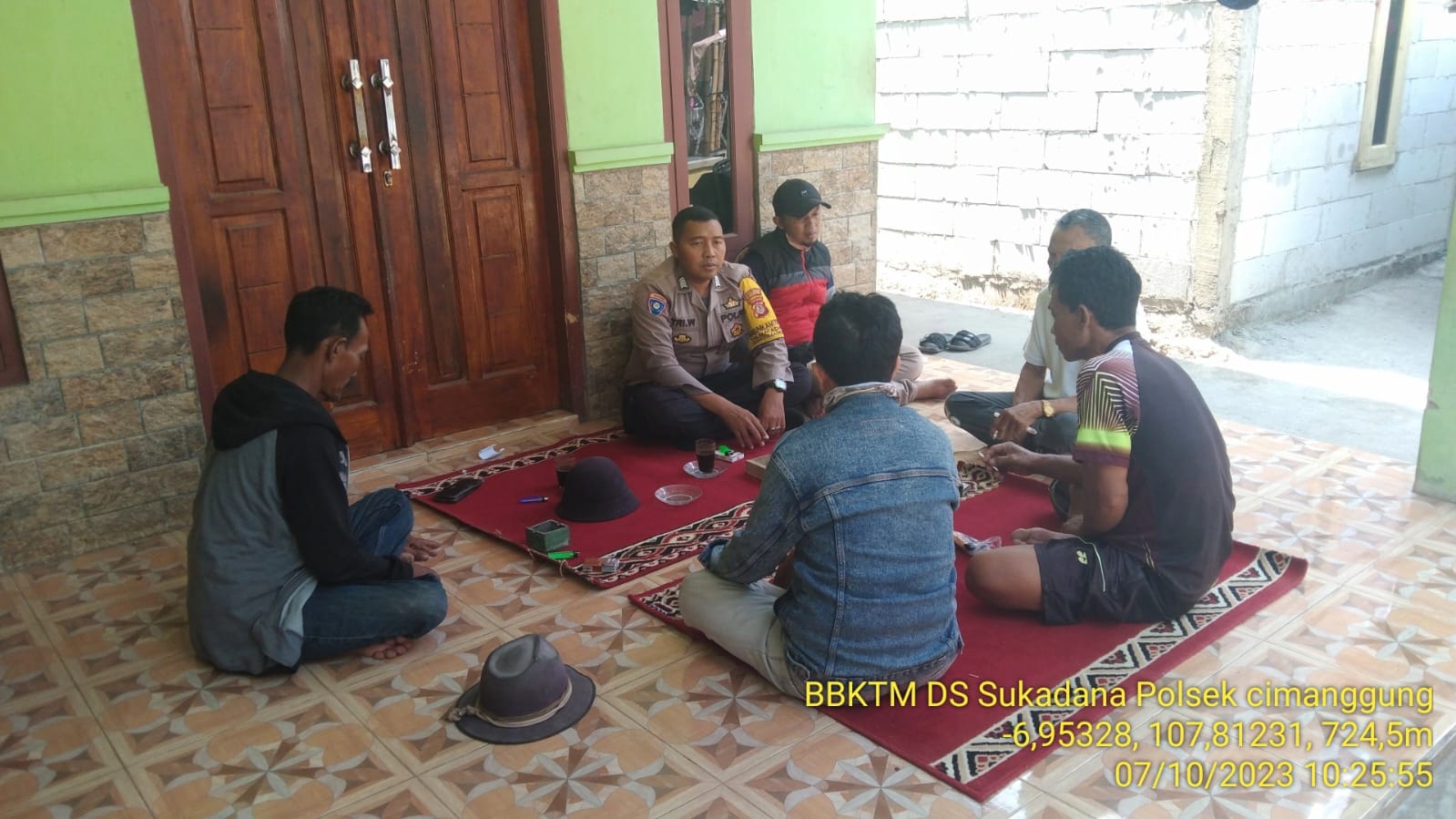 Cimanggung_Sumedang. Dalam rangka mempererat tali silaturahmi antara warga masyarakat binaan dengan bhabinkamtibmas Desa Sukadana BRIPKA TRI WIDODO melaksanakan giat sambang ke warga Desa Sukadana kec Cimanggung kab Sumedang. Sabtu (07/10/2023).