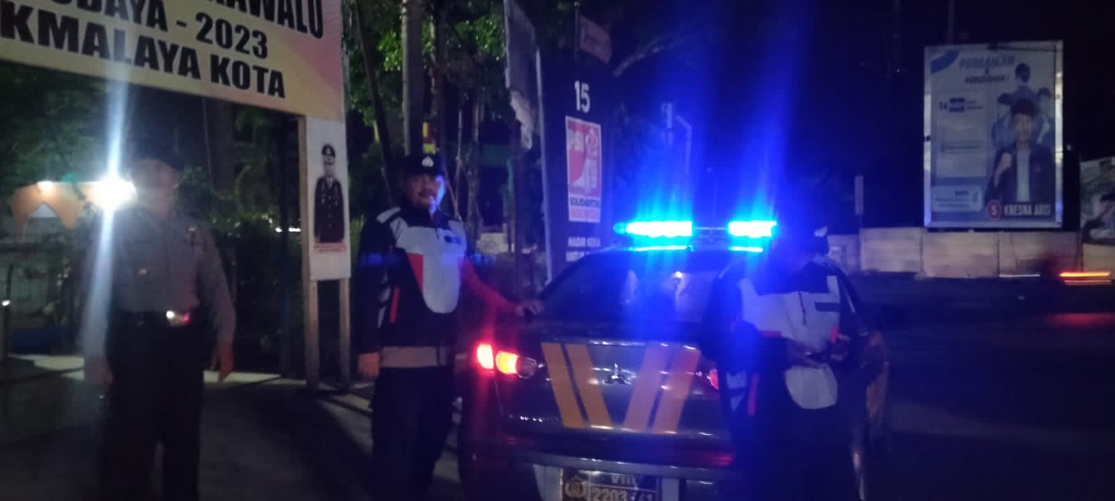 Kegiatan KRYD patroli malam minggu Polsek Kawalu dengan sasaran Knalpot Brong, Perbankan, Pertokoan, Pemukiman Penduduk, Pos Kamling dan lokasi yang di anggap rawan gangguan kamtibmas pada malam hari.