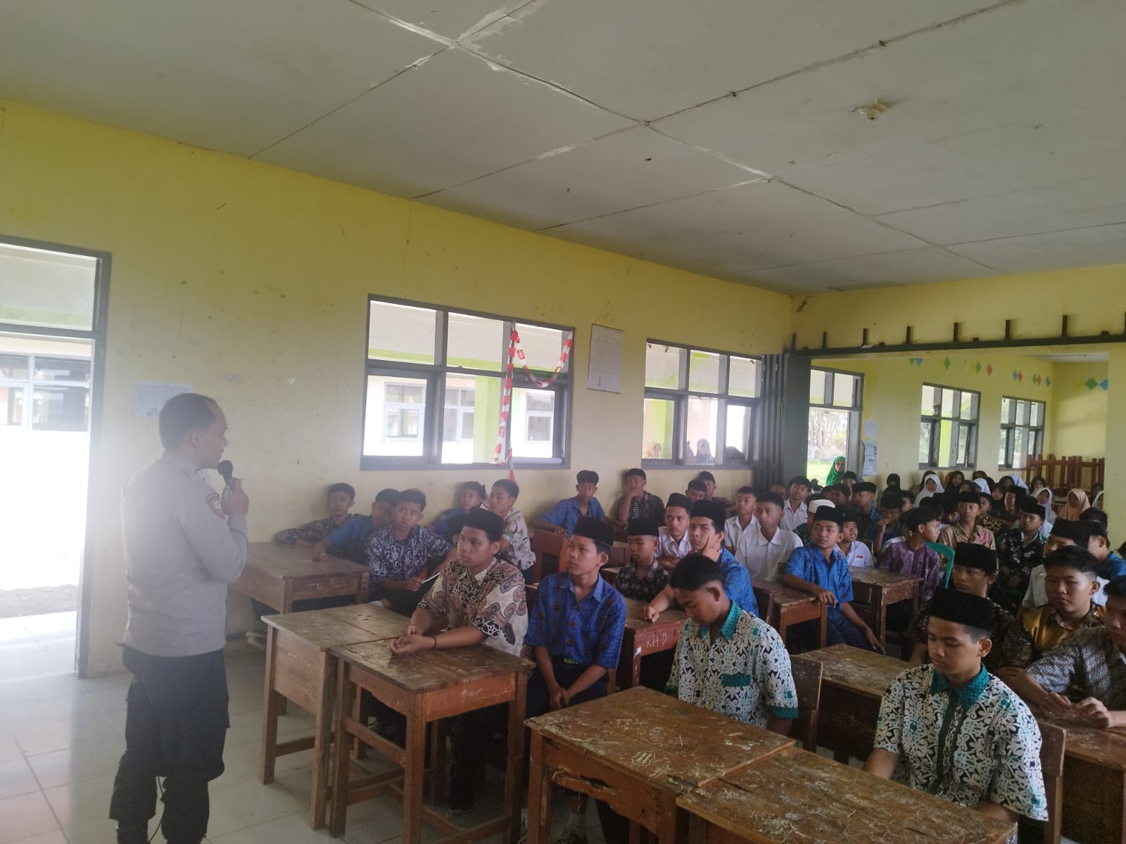 Polres Tasik Kota—Kanit Sampta Ipda Saptaji Melaksanakan Giat Pembina Upacara Pemberian Materi Tentang Kenakalan Remaja dan Bulying diMTS AL IKHLAS Panyarang Mangkubumi Tasik Kota, pada hari Senin (09 Oktober 2023.
