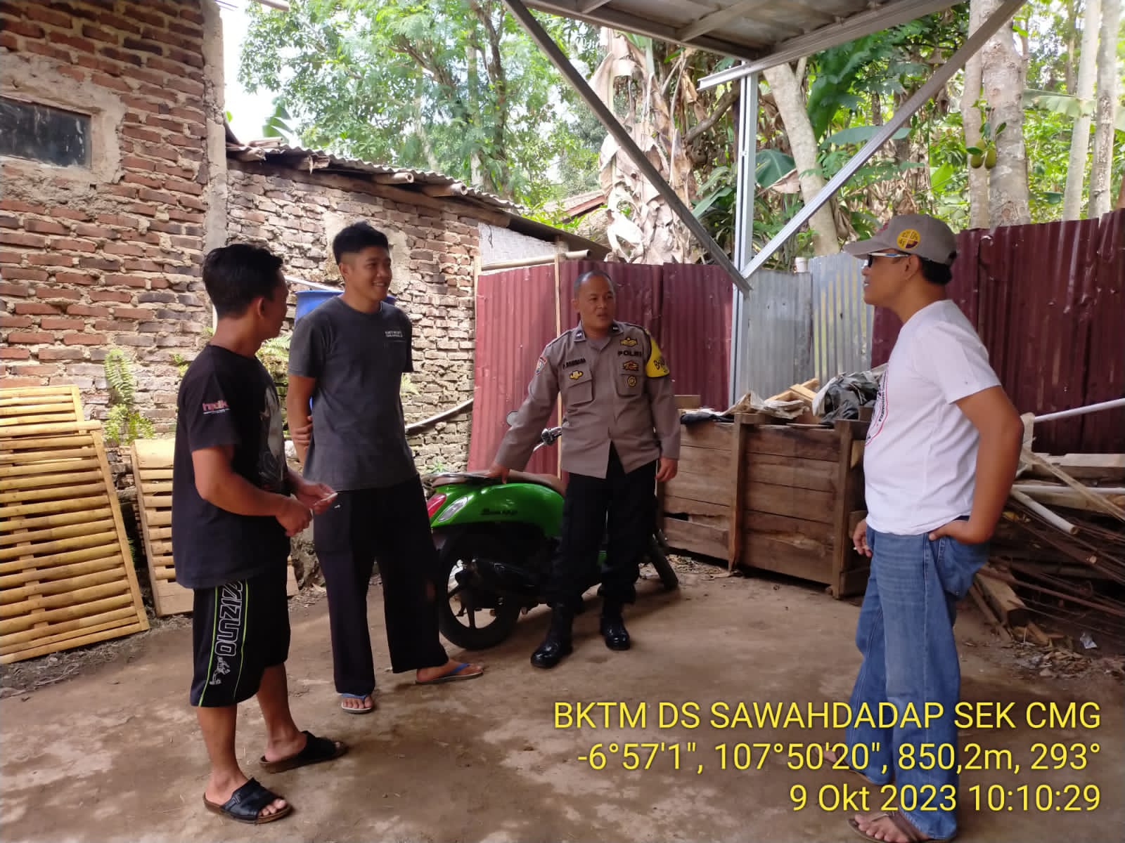 Bhabinkamtibmas Desa Sindangpakuon pada pelaksanaan sambang kali ini menyambangi warga Desa Sawahdadap Kecamatan Cimanggung Kabupaten Sumedang yang sedang melaksanaan aktifitas kesehariannya.