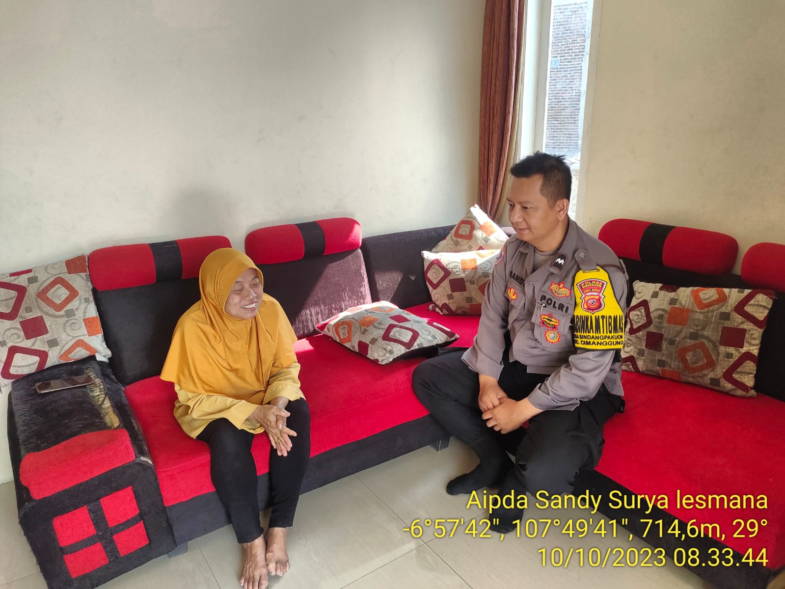 Cimanggung-Sumedang. Bhabinkamtibmas Desa Sindangpakuon Polsek Cimanggung Polres Sumedang Polda Jabar AIPDA SANDY SURYA laksanakan sambangi warga dusun manabaya guna monitoring keamanan dan ketertiban masyarakat (kamtibmas). Selasa (10/10/2023).