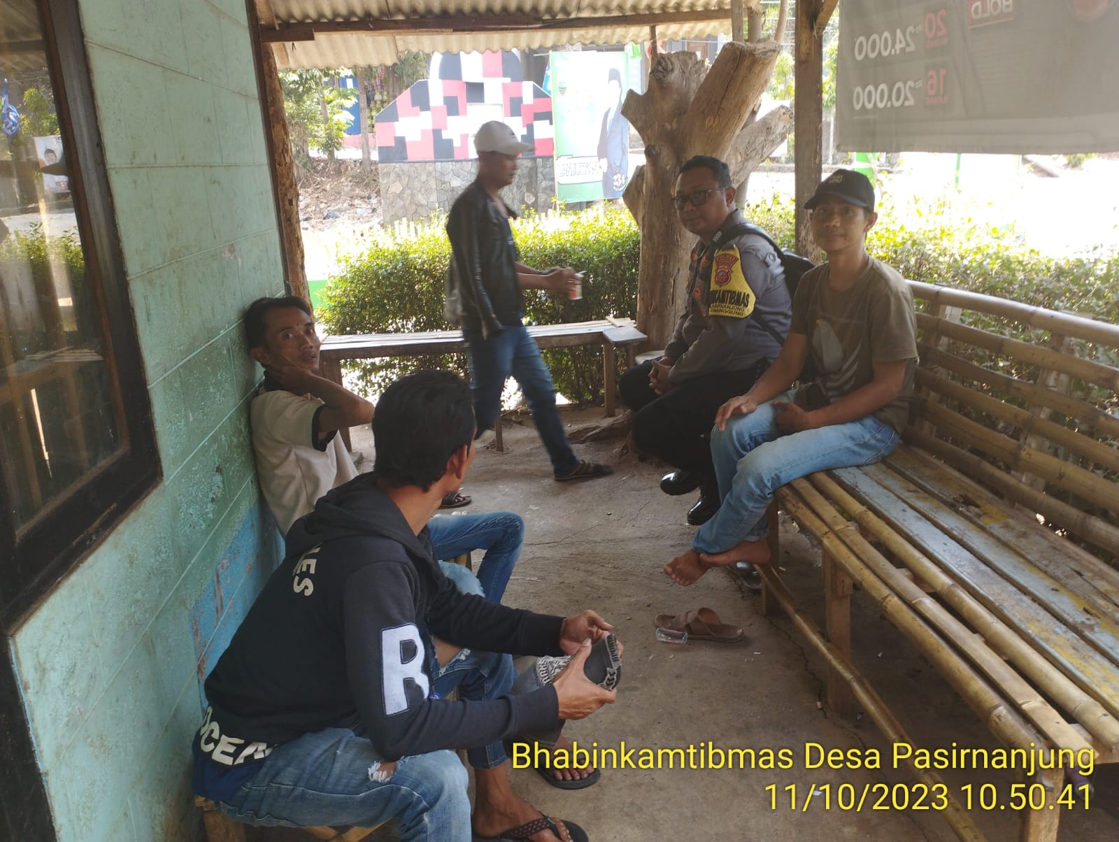 Cimanggung_Sumedang. Dalam rangka mempererat tali silaturahmi antara warga masyarakat binaan dengan bhabinkamtibmas Desa Pasirnanjung Polsek Cimanggung Polres Sumedang Polda Jabar melaksanakan giat sambang ke warga Dusun Pasirhuni Desa Pasirnanjung kecamatan Cimanggung Kabupaten Sumedang. Rabu (11/10/2023).