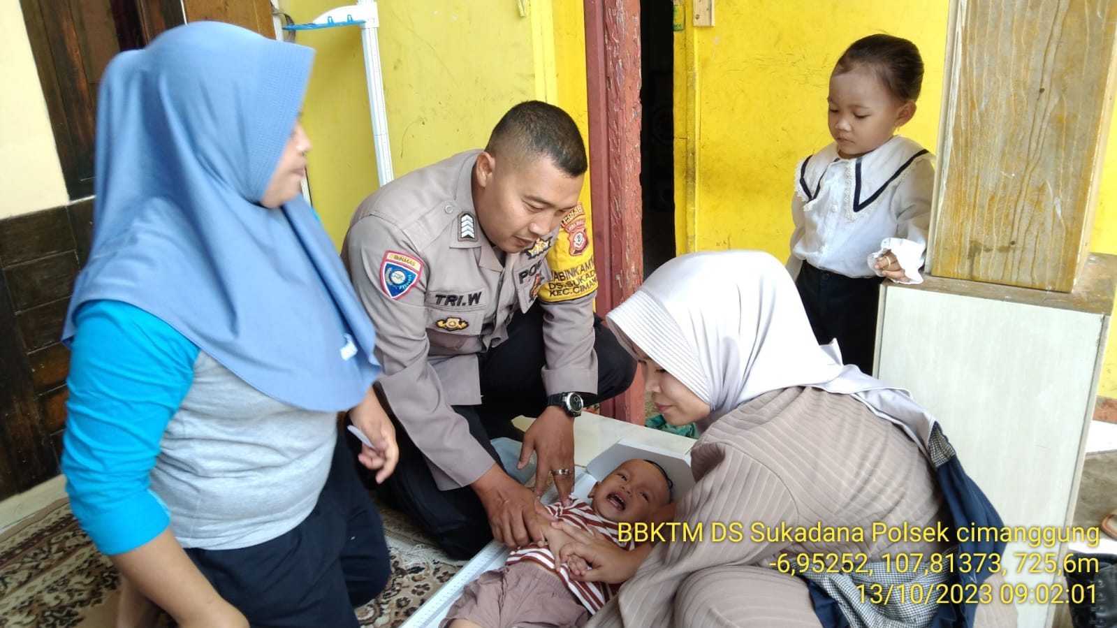 Cimanggung_Sumedang. Bhabinkamtibmas Desa Sukadana Polsek Cimanggung Polres Sumedang Polda Jabar bertempat di Posyandu cipareag 1 dsn cipareag Desa Sukadana kec. Cimanggung Kab. Sumedang telah dilaksanakan giat monitoring penimbangan dan pengukuran tinggi badan rutin balita dan pemberian vitamin A guna pencegahan stunting. Jum’at (13/10/2023).