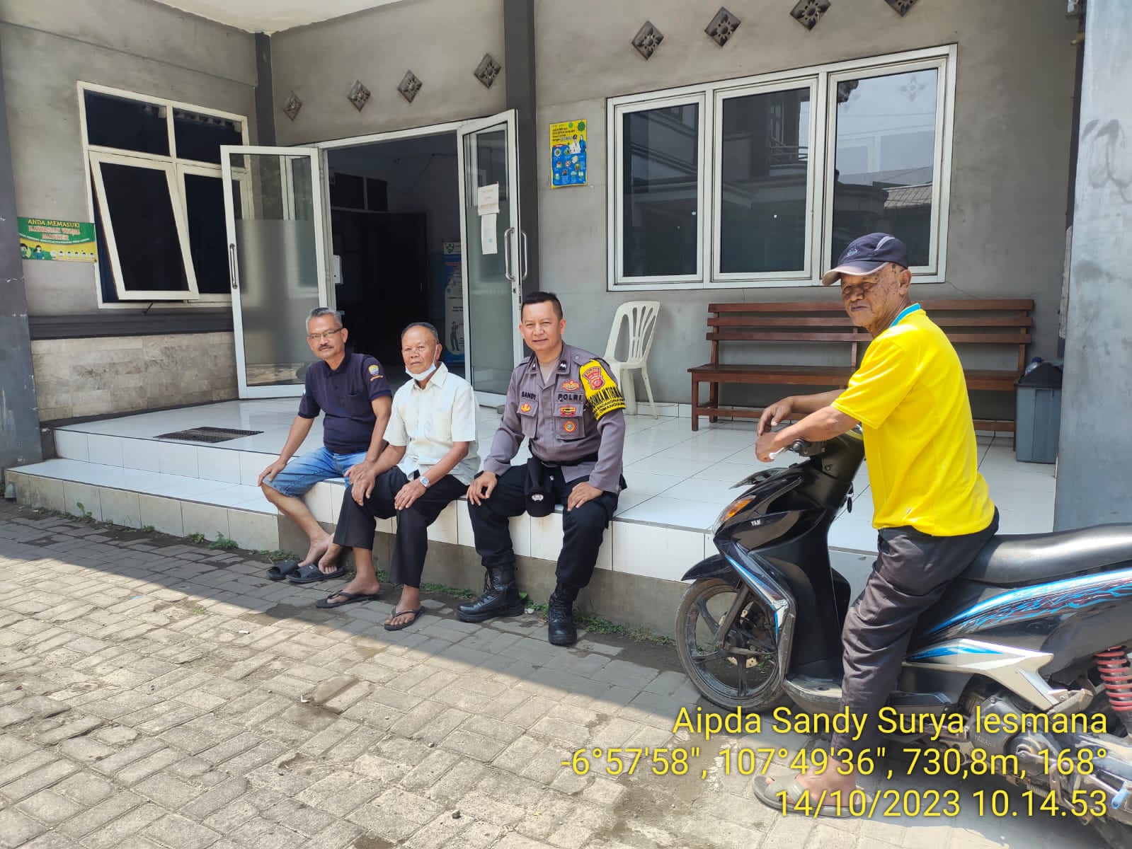 Cimanggung-Sumedang. Bhabinkamtibmas Desa Sindangpakuon Polsek Cimanggung Polres Sumedang Polda Jabar AIPDA SANDY SURYA laksanakan sambangi warga dusun manabaya guna monitoring keamanan dan ketertiban masyarakat (kamtibmas). Sabtu (14/10/2023).