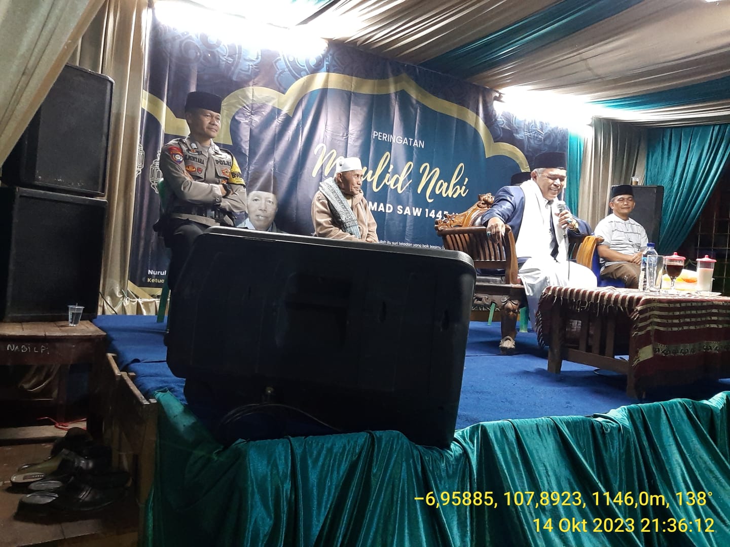 Cimanggung_Sumedang. Bertempat di halaman kantor Ds. Sindulang RT 03 RW 04 Ds. Sindulang Kec. Cimanggung Kab. Sumedang. Bripka Ekih Mintara Bhabinkamtibmas Ds. Sindulang Polsek Cimanggung Polres Sumedang Polda Jabar telah menghadiri acara Peringatan Maulid Nabi Muhammad SAW 1445 Hijriyah Tahun 2023 dan do’a bersama. Sabtu (14/10/2023).
