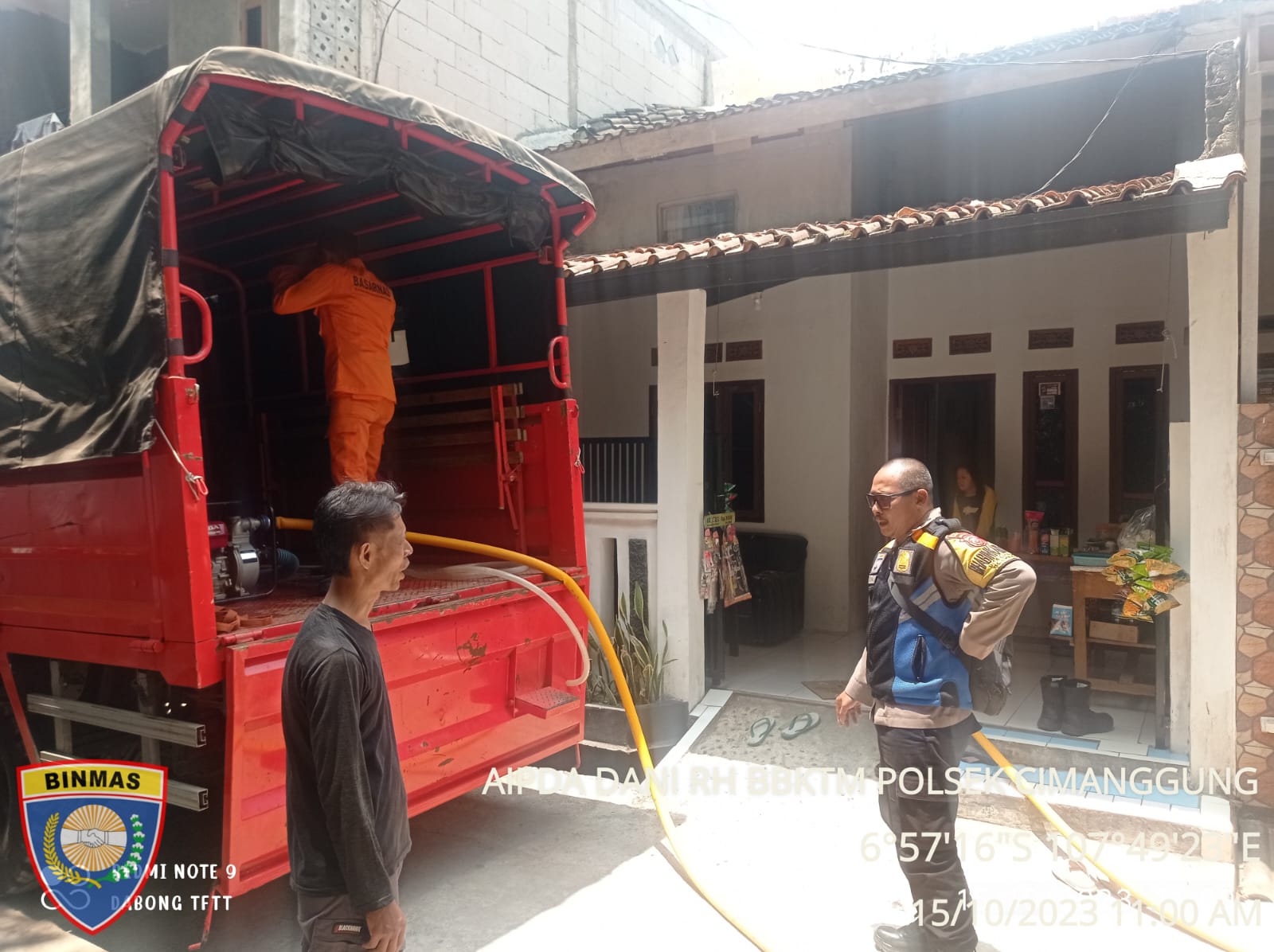 Polsek Cimanggung Polres Sumedang Bersama Basarnas Berupa Pemberian Bantuan air Bersih Kepada Masyarakat Polsek Cimanggung