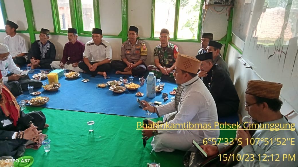 Bhabinkamtibmas Desa Tegalmanggung Polsek Cimanggung Polres Sumedang Polda Jabar Bripka Asep Sopandi dan Babinsa Sertu Engkus Kusmana menghadiri acara Maulid Nabi Muhamad SAW 1445 H. Minggu (15/10/2023).