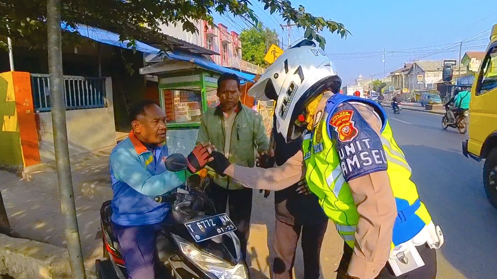 Seperti yang dilakukan personel Unit Kamsel Satlantas Polres Karawang Bripka Syarif Hidayat, yang mengingatkan masyarakat untuk selalu berhati-hati dan waspada terhadap gangguan Kamtibmas maupun aksi kejahatan jalanan.