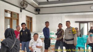 Cimanggung_Sumedang. Bertempat di wilayah Hukum Polsek Cimanggung Polres Sumedang Polda Jabar di Aula desa Sindangpakuon Rt 02/10 Kec. Cimanggung, Babinkamtibmas Polsek Cimanggung Polres Sumedang Polda Jabar Aipda Sandy Surya Lesmana telah melaksanakan giat monitoring/pengawasan pendistribusian Beras Bantuan dari Badan Pangan Nasional ( BPN ) Pusat kepada warga masyarakat penerima bantuan. Rabu (08/11/2023).