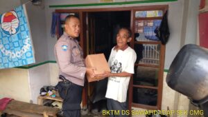 Cimanggung_Sumedang. Bhabinkamtibmas Desa Sawahdadap Polsek Cimanggung polres Sumedang Polda Jabar Aipda Deni Rohmana melaksanakan silaturahmi dan memberikan sarana kontak berupa bantuan sembako kepada seorang warga yaitu Bpk Anang (72 thn) di Dsn Cihandarusa Rt 03/13 Ds. Sawahdadap Kec. Cimanggung Kab. Sumedang. Senin (13/11/2023).
