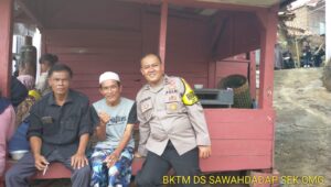 Bhabinkamtibmas Desa Sindangpakuon pada pelaksanaan sambang kali ini menyambangi warga Desa Sawahdadap Kecamatan Cimanggung Kabupaten Sumedang yang sedang melaksanaan aktifitas kesehariannya.