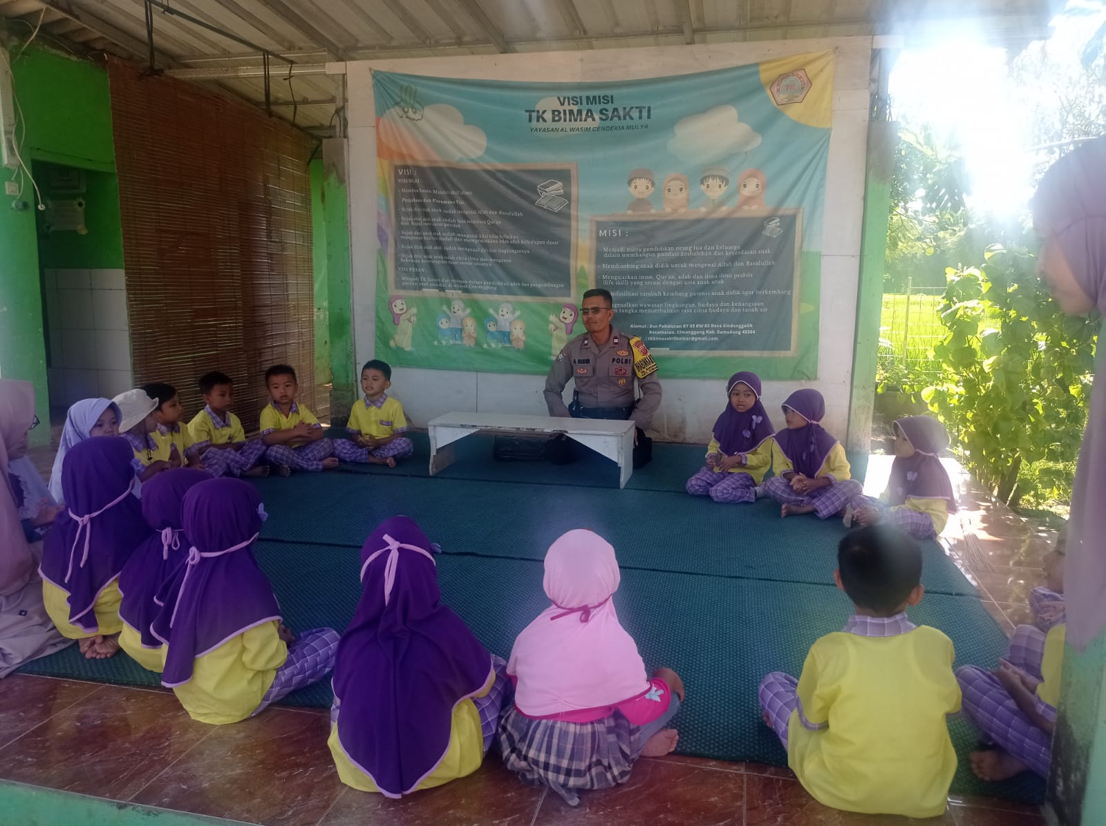 Cimanggung_Sumedang. Dalam rangka pembinaan Anak anak TK dengan bhabinkamtibmas Desa Sindanggalih Polsek Cimanggung Polres Sumedang Polda Jabar AIPTU ANHARUDIN melaksanakan giat sambang ke warga Desa Sindanggalih kecamatan Cimanggung kabupaten Sumedang. Selasa (12/12/2023).