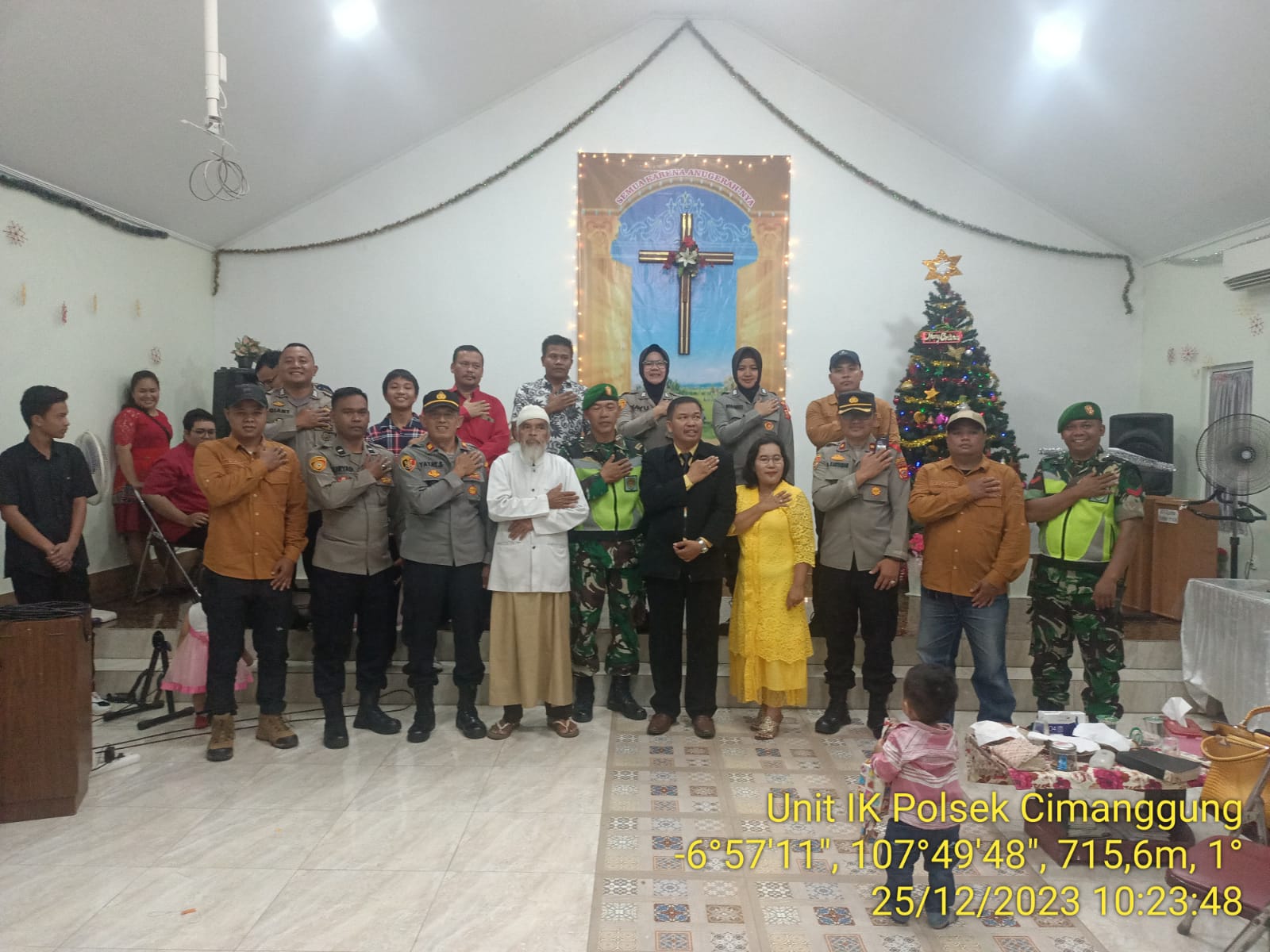 Cimanggung_Sumedang. Bertempat di Rumah Ibadah GPPS Batu Penjuru Perum Puteraco Blok C4 No.4-5 Rt. 05/04 Desa Pasirnanjung Kec Cimanggung Kab. Sumedang, telah dilaksanakan Kegiatan Pengamanan Ibadah kebaktian dalam rangka perayaan ibadah Natal Tahun 2023. Senin (25/12/2023).