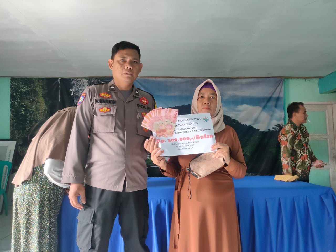 Polsek Cisompet Polres Garut Polda Jabar lakukan pengamanan pembagian BLT DD tahap 3 dari pemerintah tahun 2023 untuk warga Desa Panyindangan Kecamatan Cisompet Kabupaten Garut. Jum’at (29/12/2023).