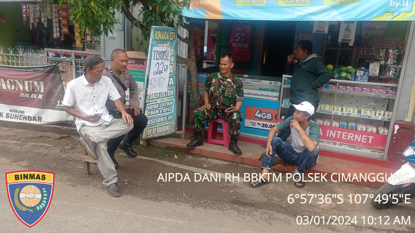 Cimanggung_Sumedang. Bertempat di Dusun Cijaringao Rw. 07 Desa Cihanjuang Kec. Cimanggung Kab. Sumedang. Bhabinkamtibmas Desa Cihanjuang Polsek Cimanggung Polres Sumedang Polda Jabar AIPDA DANI RAMDANI bersama Babinsa telah Melaksanakan Kegiatan silaturahmi kamtibmas dan Sosialisasi Layanan 110 Kepada warga masyarakat di Dusun Cijaringao Rt. 01 Rw. 07 Desa Cihanjuang Kec. Cimanggung Kab. Sumedang Dalam Rangka Pelaksanaan Quick Wins Presisi POLRI. Rabu (03/01/2024).