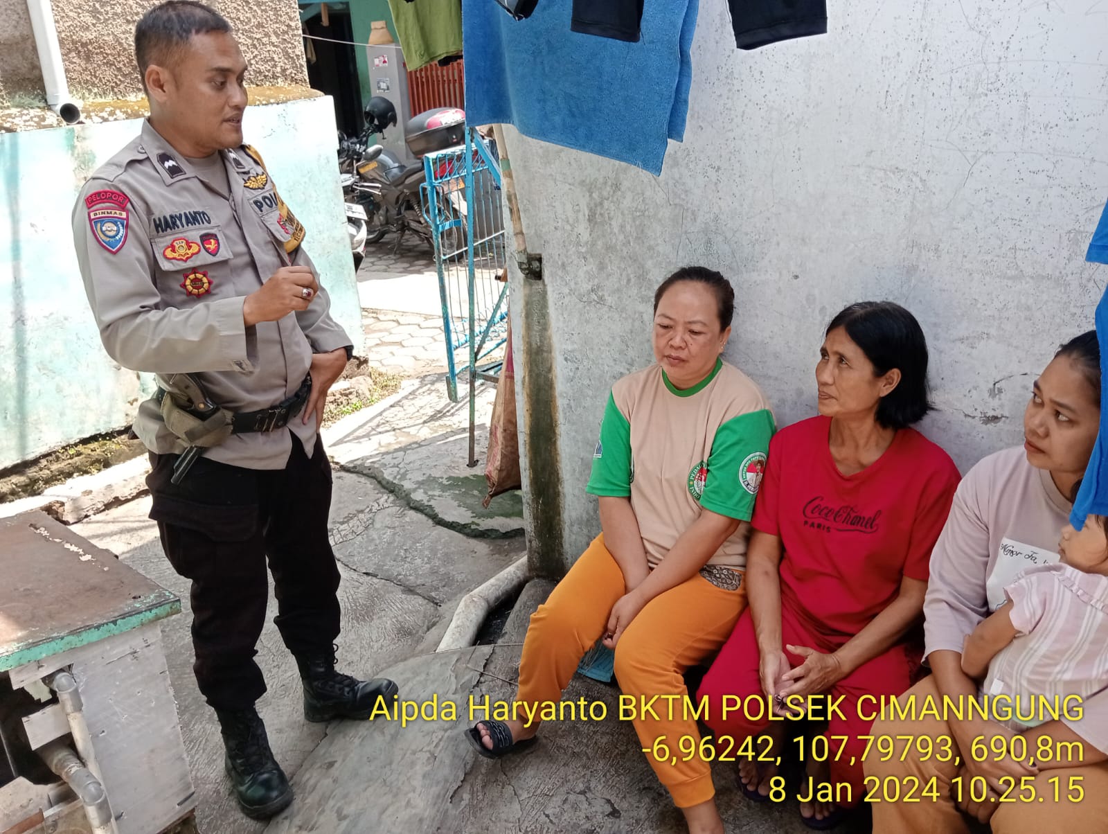 Cimanggung_Sumedang. Bertempat di rw 02 Desa Mangunarga Kec. Cimanggung Kab. Sumedang. Bhabinkamtibmas Desa Mangunarga Polsek Cimanggung Polres Sumedang Polda Jabar AIPDA HARYANTO telah Melaksanakan Kegiatan sambang kamtibmas dan Sosialisasi Layanan 110 Kepada warga Dusun Ciparuang Desa Kec. Cimanggung Kab. Sumedang Dalam Rangka Pelaksanaan Quick Wins Presisi POLRI. Senin (08/01/2024).