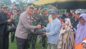 Acara dilanjutkan dengan pembagian bingkisan kepada masyarakat Desa Cilamaya Girang, dan pengecekan Pos Kesehatan gabungan TNI-POLRI.