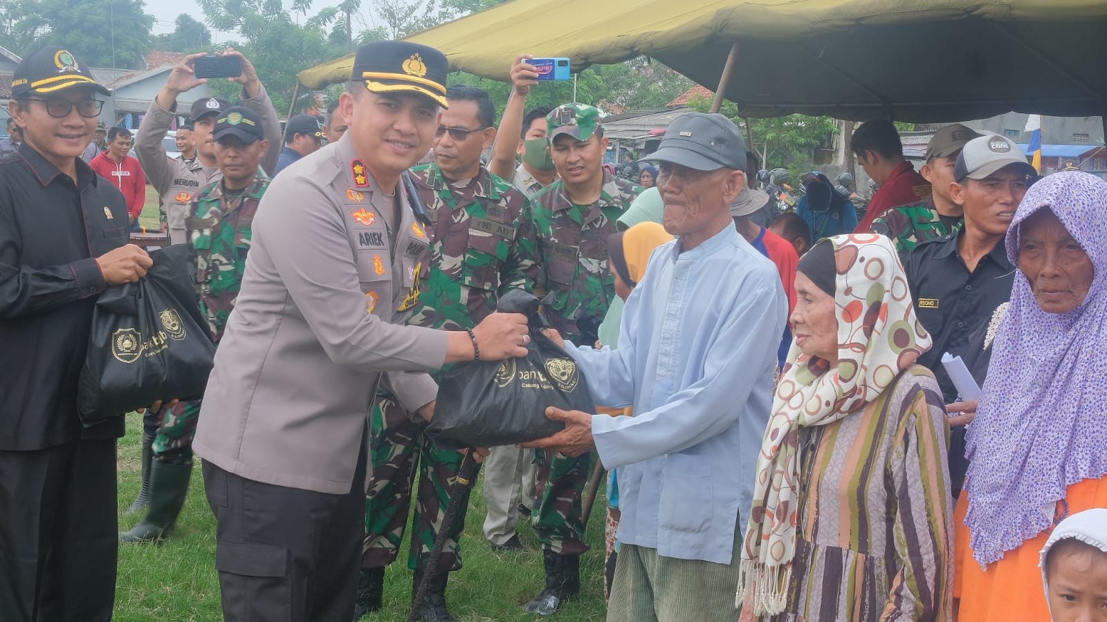 Acara dilanjutkan dengan pembagian bingkisan kepada masyarakat Desa Cilamaya Girang, dan pengecekan Pos Kesehatan gabungan TNI-POLRI.
