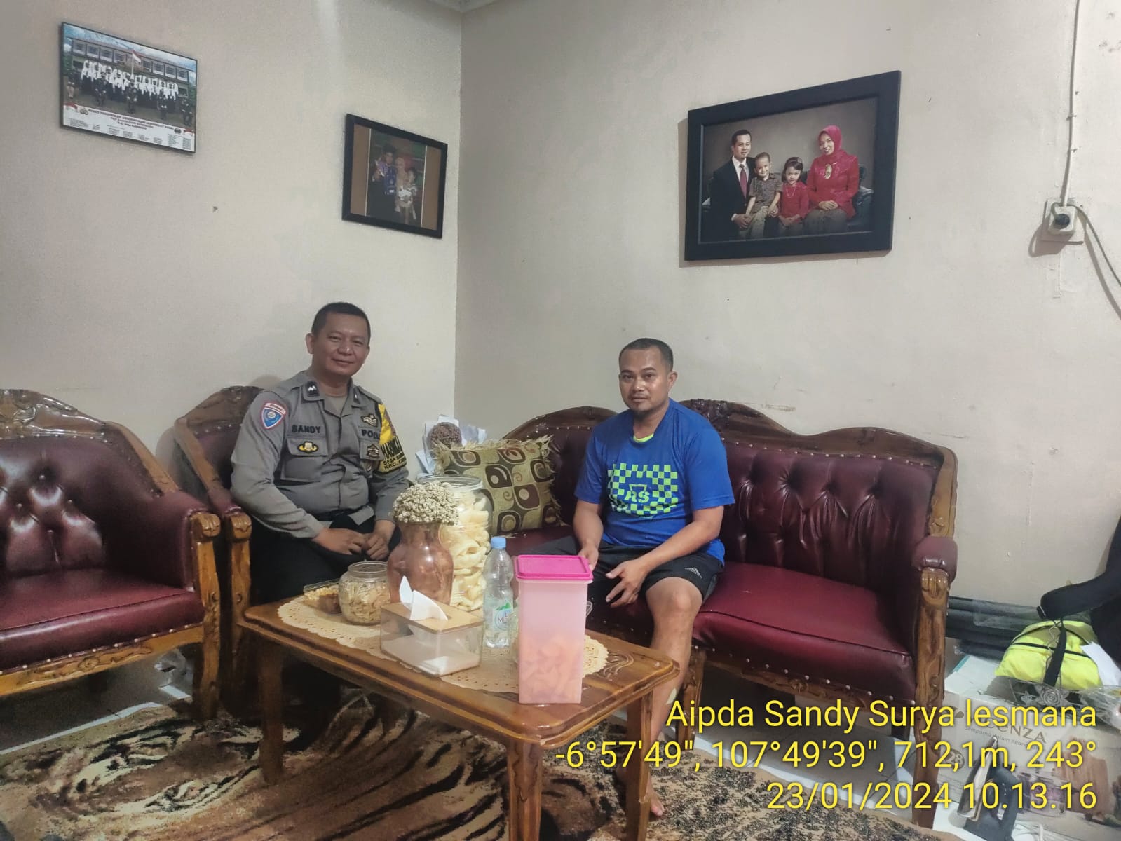 Cimanggung-Sumedang. Bhabinkamtibmas Desa Sindangpakuon Polsek Cimanggung Polres Sumedang Polda Jabar AIPDA SANDY SURYA laksanakan sambangi warga dusun manabaya guna monitoring keamanan dan ketertiban masyarakat. Selasa (23/01/2024).