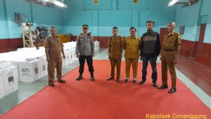 Cimanggung_Sumedang. Unsur Forkopimcam Cimanggung di dampingi Bhabinkamtibmas Desa Cihanjuang Polsek Cimanggung Polres Sumedang Polda Jabar AIPDA DANI RAMDANI HIDAYAT melaksanakan kegiatan monitoring gudang logistik pemilu di Desa Cihanjuang kecamatan Cimanggung kabupaten Sumedang. Senin (12/02/2024).