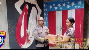 Cimanggung_Sumedang. Bhabinkamtibmas Desa Cihanjuang Polsek Cimanggung Polres Sumedang Polda Jabar AIPDA DANI RAMDANI HIDAYAT telah melaksanakan kegiatan silaturahmi kamtibmas sekaligus memberi sarana kontak berupa Sembako Kepada Warga Dusun Bunter Rt 02/02 Desa Cihanjuang Kecamatan Cimanggung Kabupaten Sumedang. Kamis (14/11/2024). Adapun dalam kegiatan silaturahmi dan pemberian sarana kontak tersebut, bhabinkamtibmas menyampaikan himbauan kamtibmas, di antaranya :• _Memberikan sarana kontak tersebut kepada warga guna menunjang ekonomi_• _Agar masyarakat bisa mencegah money politicjepang pilkada tahun 2024_ • _Selalu waspada dengan perubahan cuaca dengan seringnya hujan yang mengakibatkan terjadinya angin puting beliung, banjir dan longsor._• _Segera melapor/koordinasikan dengan bhabinkamtibmas/babinsa apabila terjadi gangguan kamtibmas di lingkungan._Kegiatan berjalan aman, terjalin silaturahmi antara warga masyarakat dengan bhabinkamtibmas.(Lia/Humas Polsek Cimanggung)