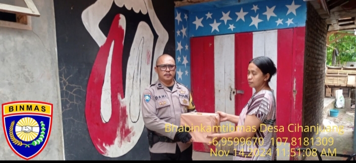 Cimanggung_Sumedang. Bhabinkamtibmas Desa Cihanjuang Polsek Cimanggung Polres Sumedang Polda Jabar AIPDA DANI RAMDANI HIDAYAT telah melaksanakan kegiatan silaturahmi kamtibmas sekaligus memberi sarana kontak berupa Sembako Kepada Warga Dusun Bunter Rt 02/02 Desa Cihanjuang Kecamatan Cimanggung Kabupaten Sumedang. Kamis (14/11/2024). Adapun dalam kegiatan silaturahmi dan pemberian sarana kontak tersebut, bhabinkamtibmas menyampaikan himbauan kamtibmas, di antaranya :• _Memberikan sarana kontak tersebut kepada warga guna menunjang ekonomi_• _Agar masyarakat bisa mencegah money politicjepang pilkada tahun 2024_ • _Selalu waspada dengan perubahan cuaca dengan seringnya hujan yang mengakibatkan terjadinya angin puting beliung, banjir dan longsor._• _Segera melapor/koordinasikan dengan bhabinkamtibmas/babinsa apabila terjadi gangguan kamtibmas di lingkungan._Kegiatan berjalan aman, terjalin silaturahmi antara warga masyarakat dengan bhabinkamtibmas.(Lia/Humas Polsek Cimanggung)