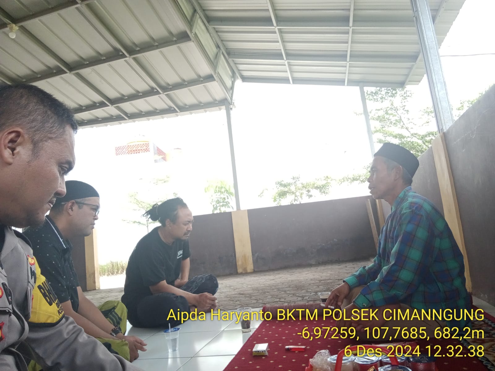 Cimanggung_Sumedang. Bhabinkamtibmas Desa Cimanggung Polsek Cimanggung Polres Sumedang Polda Jabar AIPDA HARYANTO telah melaksanakan kegiatan sambang dan silaturahmi kamtibmas kepada Tokoh Agama, DKM masjid Abdurohman ustad Dadang di Rw 01 DS Mangunarga Kecamatan Cimanggung Dalam rangka pelaksanaan BEYOND TRUST PRESISI Jum’at Curhat. Jum’at (06/12/2024).