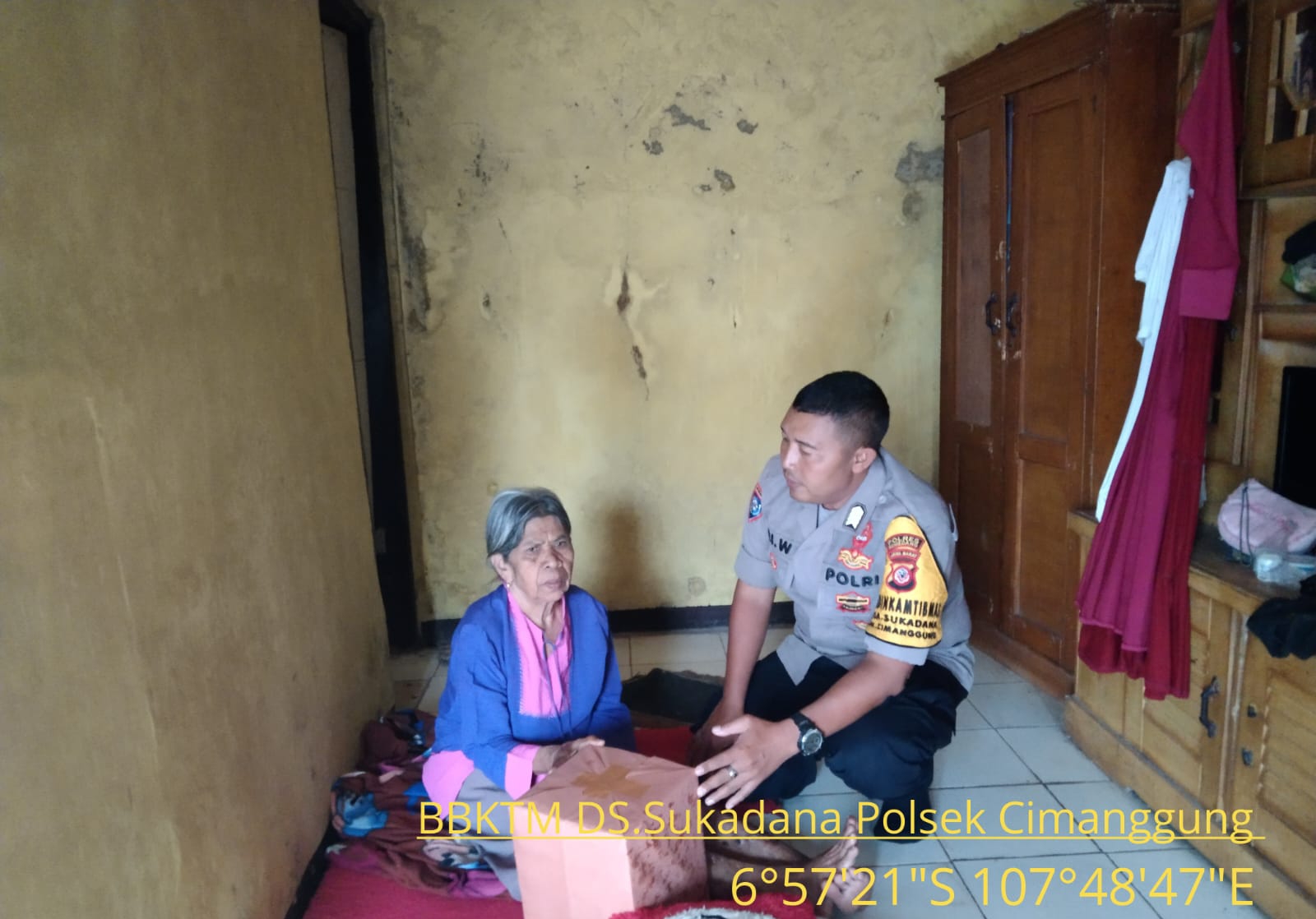 Cimanggung_Sumedang. Bhabinkamtibmas Desa Sukadana Polsek Cimanggung Polres Sumedang Polda Jabar BRIPKA TRI WIDODO telah melaksanakan kegiatan silaturahmi kamtibmas sekaligus memberikan sarana kontak berupa Sembako Kepada Warga Ibu Edah 70 th Dusun Cipareag Rt 02/06 Desa Sukadana Kecamatan Cimanggung Kabupaten Sumedang. Jum’at (06/12/2024). Adapun dalam kegiatan silaturahmi dan pemberian sarana kontak tersebut, bhabin kamtibmas menyampaikan himbauan kamtibmas, di antaranya :• Memberikan arahan agar warga masyarakat tetap melaksanakan Pos Kamling guna menjaga Kamtibmas di limgkungan sekitar.• Tetap mematuhi protokol kesehatan, baik di dalam rumah maupun di lingkungan warga. • Selalu waspada dengan perubahan cuaca dengan memasuki musim hujan.• Segera melapor/koordinasikan dengan bhabinkamtibmas/babinsa apabila terjadi gangguan kamtibmas di lingkungan. Kegiatan berjalan aman, terjalin silaturahmi antara warga masyarakat dengan bhabinkamtibmas.(Lia/Humas Polsek Cimanggung)