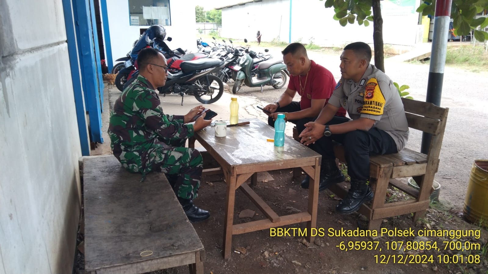 Cimanggung_Sumedang. Bhabinkamtibmas Desa Sukadana Polsek Cimanggung Polres Sumedang Polda Jabar BRIPKA TRI WIDODO dan Babinsa SERTU ACHMAD NURSALAM. melaksanakan kegiatan sambang ke warga binaan Desa Sukadana Kecamatan Cimanggung Kabupaten Sumedang. Kamis (12/12/2024). Adapun dalam kegiatan tersebut bertujuan  Bhabinkamtibmas menyampaikan himbauan kamtibmas, di antaranya :• Antisipasi C 3 (curat, curas dan curanmor) di wilayah Desa Binaan dan selalu mengingatkan warga lainnya agar selalu waspada. • Selalu waspada dengan perubahan cuaca memasuki musim hujan antisipasi banjir, longsor dan pohon tumbang. • Agar pemuda melakukan hal yg Positif ,jauhi narkoba dan minuman beralkohol serta Judol.• Agar giat ronda malam lebih di tingkatkan.• Segera melapor/koordinasikan dengan bhabinkamtibmas/babinsa apabila terjadi gangguan kamtibmas di lingkungan. Kegiatan berjalan aman, lancar dan terjalin  Silaturahmi warga masyarakat dengan Bhabinkamtibmas.(Lia/Humas Polsek Cimanggung)