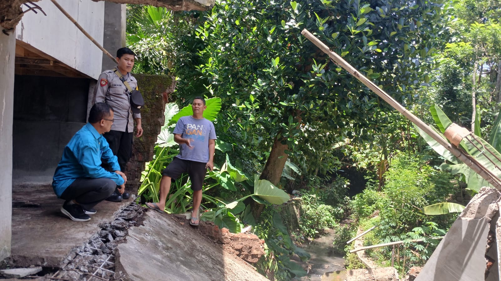 Kali ini Bripka Imam Wahyudin bersama Serka Dani serta Lurah Banjar dalam kegiatannya yaitu mengecek Lokasi Warganya Yang ambruk akibat gerusan Sungai di belakang rumahnya tadi malam.