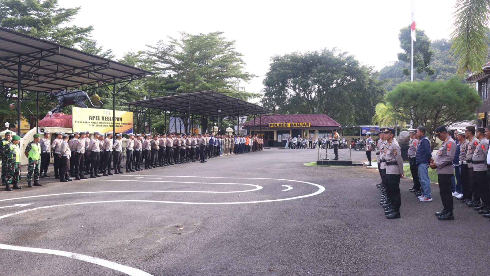 Berlokasi di Halaman Mapolres Banjar, Kapolres Banjar AKBP Tyas Puji Rahadi, S.I.K. pimpin apel kesiapan pengamanan malam Takbir hari raya Idul Fitri 1446 H 2025. (30/03/2025)