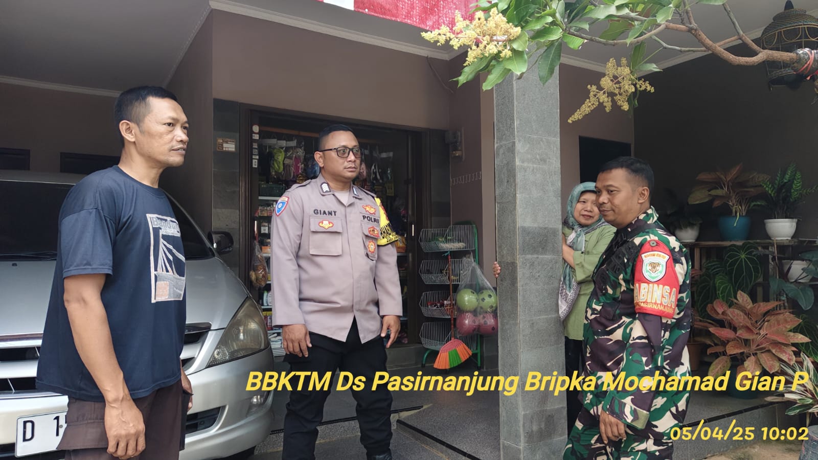 Cimanggung_Sumedang. Bhabinkamtibmas Desa pasirnanjung dan Babinsa melaksanakanSambang/Silaturahmi Kantibmas Ke Warga Binaan di Dsn Putraco DS.Pasirnanjung Kecamatan Cimanggung Kabupaten Sumedang. Sabtu (05/04/2025). Dalam kesempatan tersebut Bhabinkamtibmas menyampaikan pesan-pesan kamtibmas agar :- Berperan aktif membantu menjaga keamanan lingkungan sekitar.- Waspadai pengendara yang tidak dikenal yang menggunakan R2 atau R4 apabila mencurigakan segera mencatat Plat. No kendaraan tersebut.- Antisipasi kepada orang yang tidak dikenal atau yang mencurigakan apabila ada orang yang masuk ke daerah tsbt segera ditanya kartu tanda pengenal dan tujuan nya apa, sebagai tindakan preventif yang berpotensi guan kamtibmas.- Tidak terbawa isu2 berita hoax yang belum tentu kebenarannya. – Waspada bencana Alam, longsor, pohon tumbang. – Mengingatkan untuk meningkatkan Siskamling.Kegiatan dapat Berjalan dengan Aman dan Kondusif serta terjalin tali silaturahmi, tersosialisinya anjuran/peraturan pemerintah yang harus ditaati dan dilaksanakan oleh seluruh warga masyarakat.