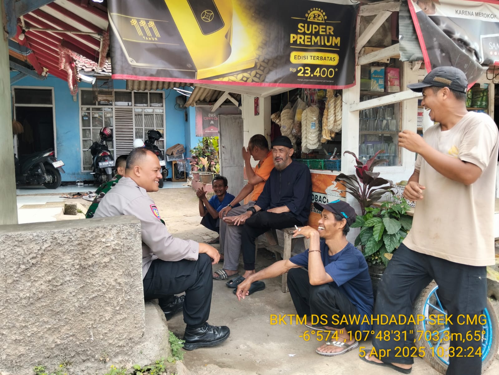 Cimanggung_Sumedang. Bhabinkamtibmas Polsek Cimanggung Polres Sumedang Polda Jabar AIPTU DENI ROHMANA bersama Babinsa SERKA ASEP TEDI Telah Melaksanakan Kegiatan Sambang dan monitoring Situasi Kamtibmas di wilayah Dsn. Legok Rw. 01/01 Desa Sawahdadap Kecamatan Cimanggung Kabupaten Sumedang dalam Rangka Beyond Trust Presisi Polri. Sabtu (05/04/2025). Adapun Himbauan Kamtibmas dalam kegiatan tersebut dengan beberapa hal sebagai berikut :1. Menyampaikan pesan – pesan Kamtibmas agar segera digiatkan kembali Poskamling2. Menginformasikan berita berita penting dan terkini3. Menyerap informasi dan Aspirasi dari warga masyarakat4. Menampung usulan, saran dan keluhan terhadap pemerintah Desa Sawahdadap 5. Pemecahan Masalah / Problem Solving.Warga binaan sangat antusias menyambut kedatangan Bhabinkamtibmas, Kegiatan tersebut berjalan aman dan lancar serta kondusif.Bahwa kegiatan tersebut sehingga terciptanya situasi dan Kondisi Kamtibmas yang kondusif di wilayah Desa Sawahdadap Kecamatan Cimanggung Kabupaten Sumedang.(Lia/Humas Polsek Cimanggung)
